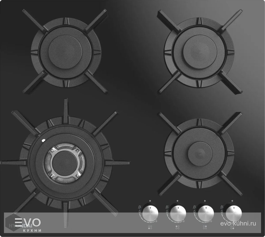- Правая ближняя конфорка газовая, мощность 900 Вт, одноконтурная