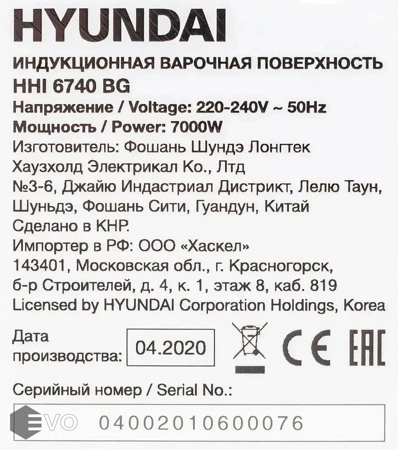 - Модель: HHI 6740 BG