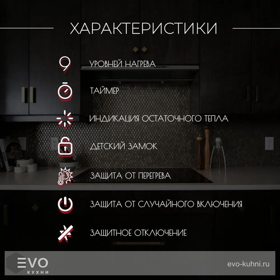 Функции: | Защитное отключение конфорок Индикатор остаточного тепла |