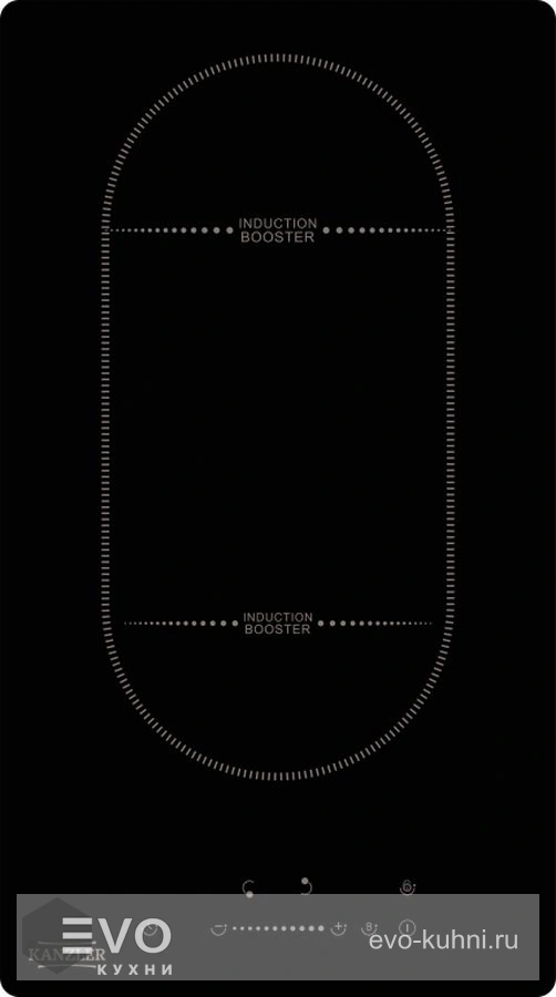 - Индукционные нагревательные элементы: 1х2–2.3 (бустер) кВт (задний), диаметр 180 мм; 1х1.2-1.5 (бустер) кВт (передний), диаметр 160 мм