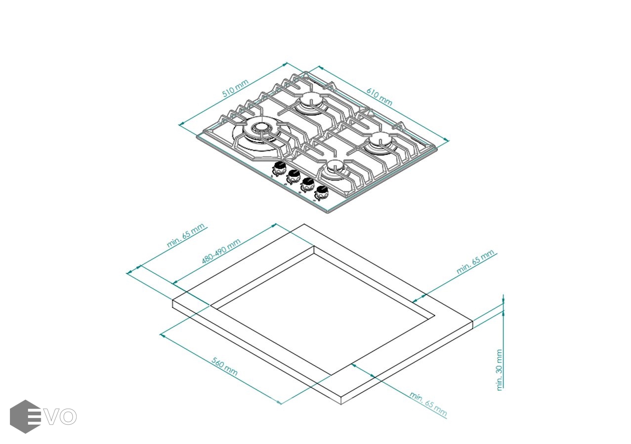 - Размер ниши для встраивания (ШхГ), мм: 560×480-490