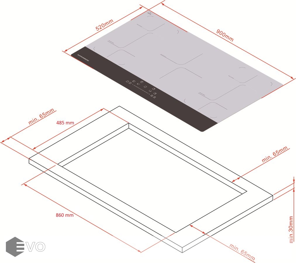 - Размер ниши для встраивания (ШхГ), мм: 860×485