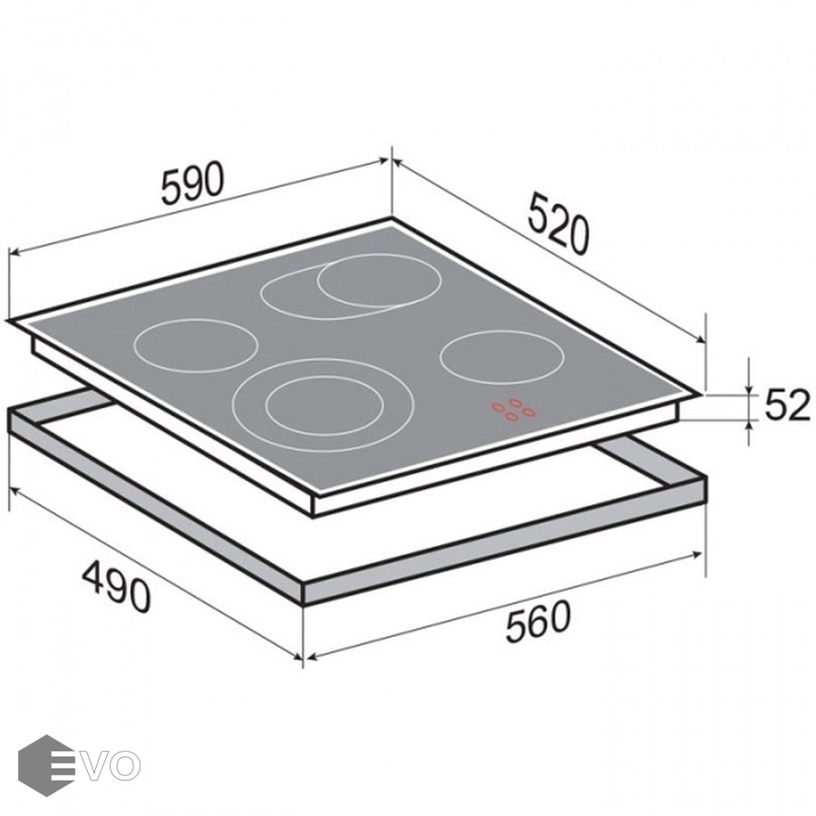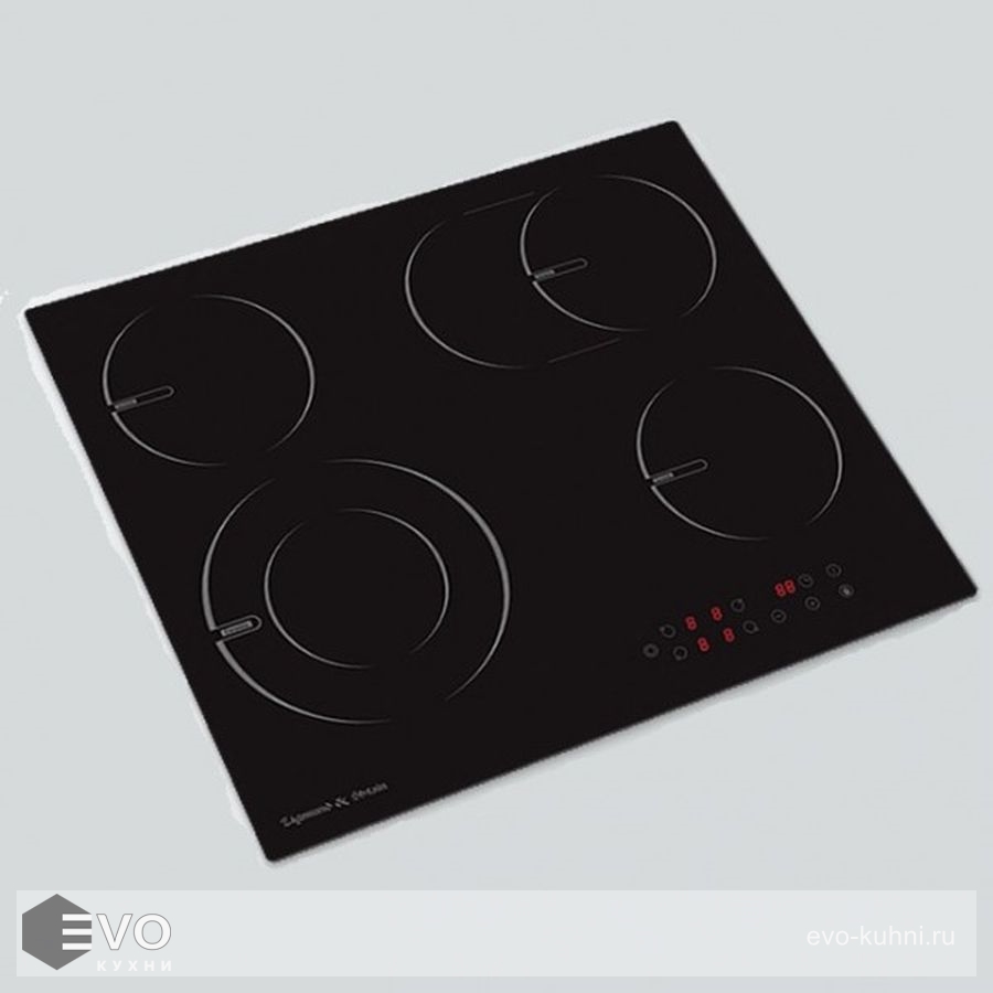 Функции: Таймер конфорок Блокировка панели управления Защитное отключение конфорок Индикатор остаточного тепла Контурная конфорка Овальная зона нагрева