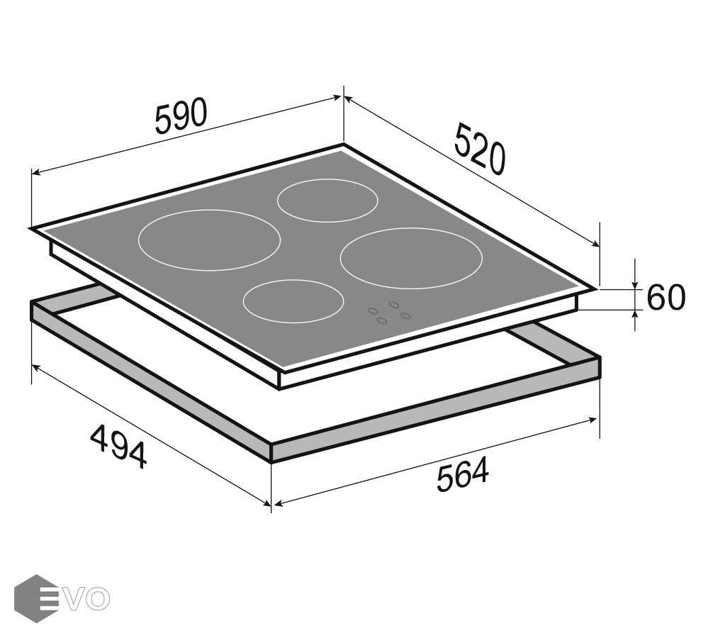 Размеры встраивания (ВхШхГ), мм: | 60х564х494 |