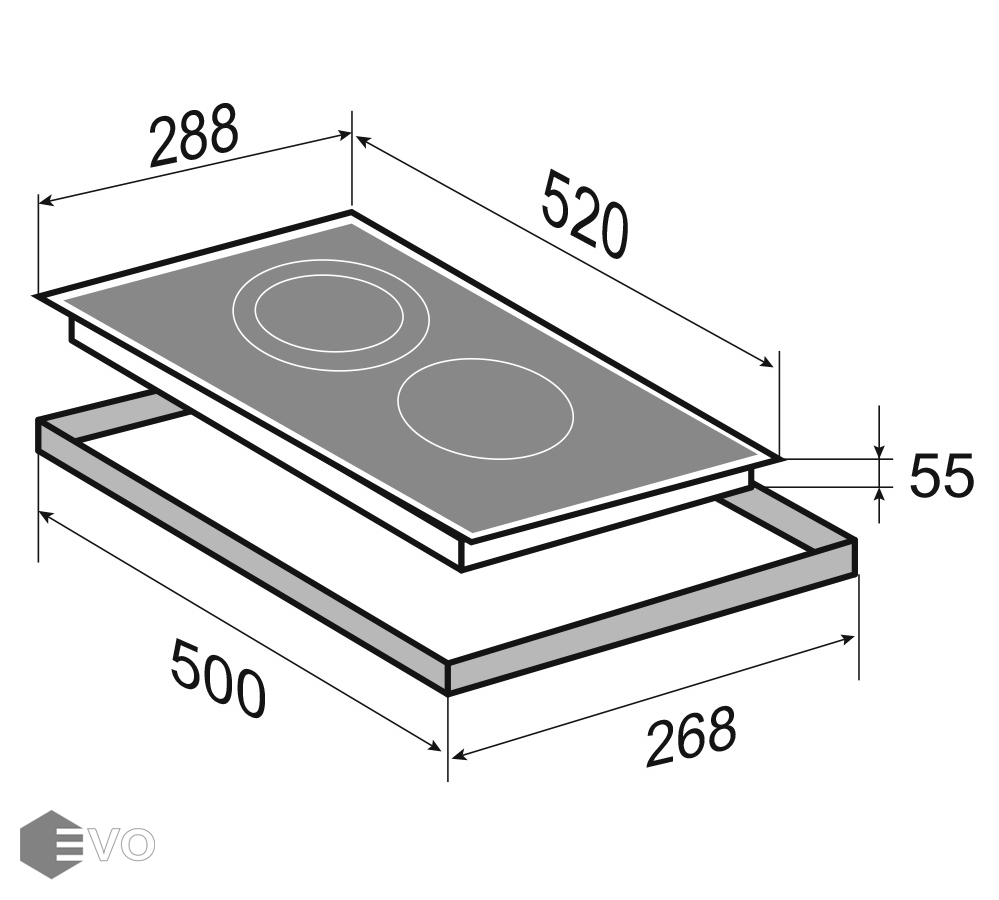 Размеры встраивания (ВхШхГ), мм: | 55х268х500 |