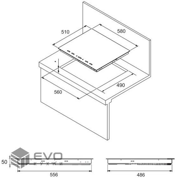 Размеры встраивания (ВхШхГ), мм: 40х560х490