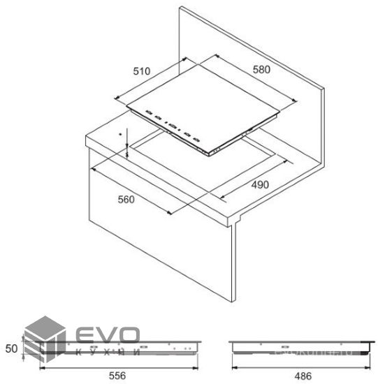 Размеры встраивания (ВхШхГ), мм: | 40х560х490 |