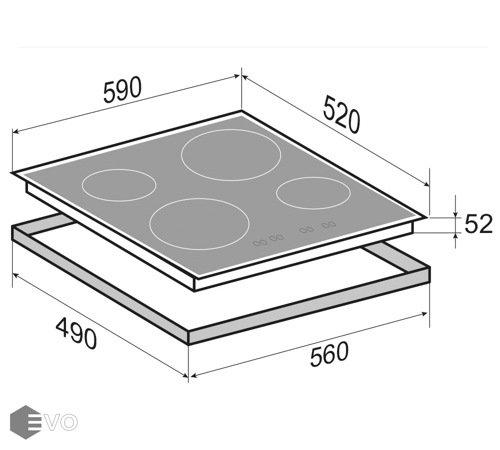 Размеры встраивания (ВхШхГ), мм: | 52х560х490 |