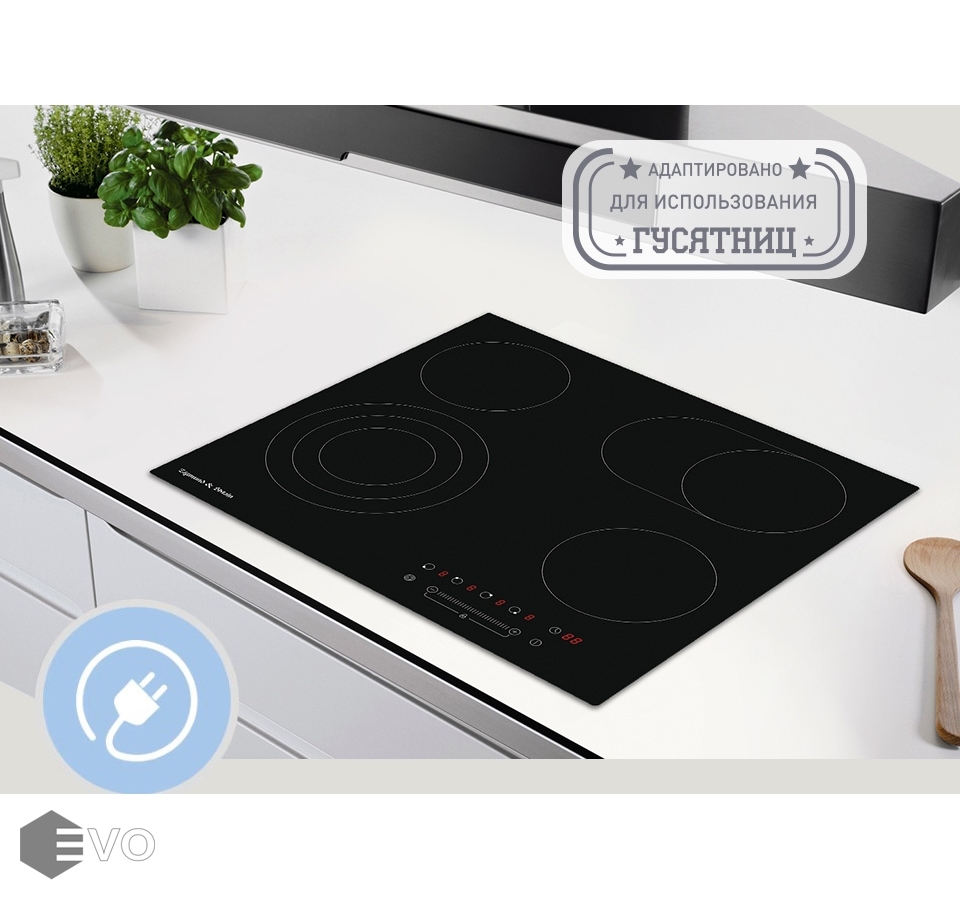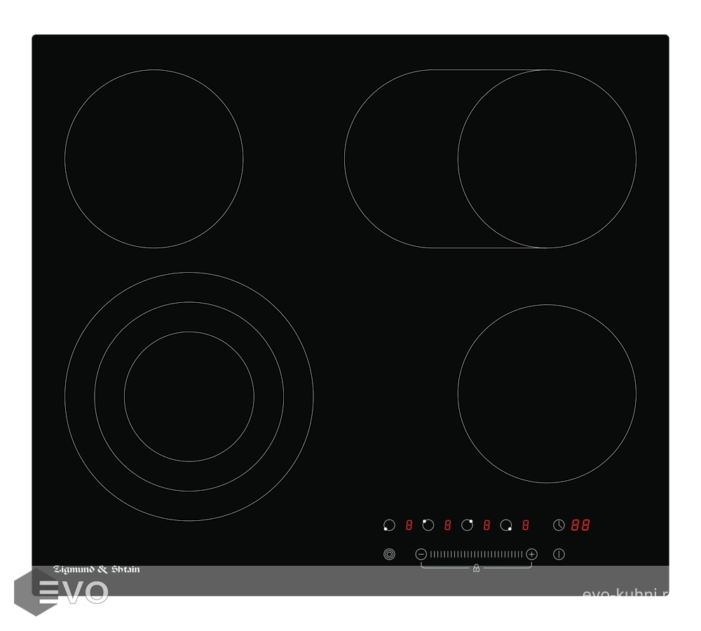 Электрическая варочная поверхность Zigmund & Shtain CN 38.6 B также предусматривает трехконтурную конфорку, на которой можно готовить блюда в посуде разного диаметра. Сенсорный слайдер позволит подобрать наиболее оптимальную мощность нагрева из девяти вариантов за одно движение пальца. Индикатор остаточного тепла пригодится для томления блюда: вам не придется тратить электроэнергию, чтобы доготовить блюдо. Просто оставьте его на конфорке, которая еще не успела остыть. Кнопка блокировки работы поверхности особенно актуальна для семей с маленькими детьми.