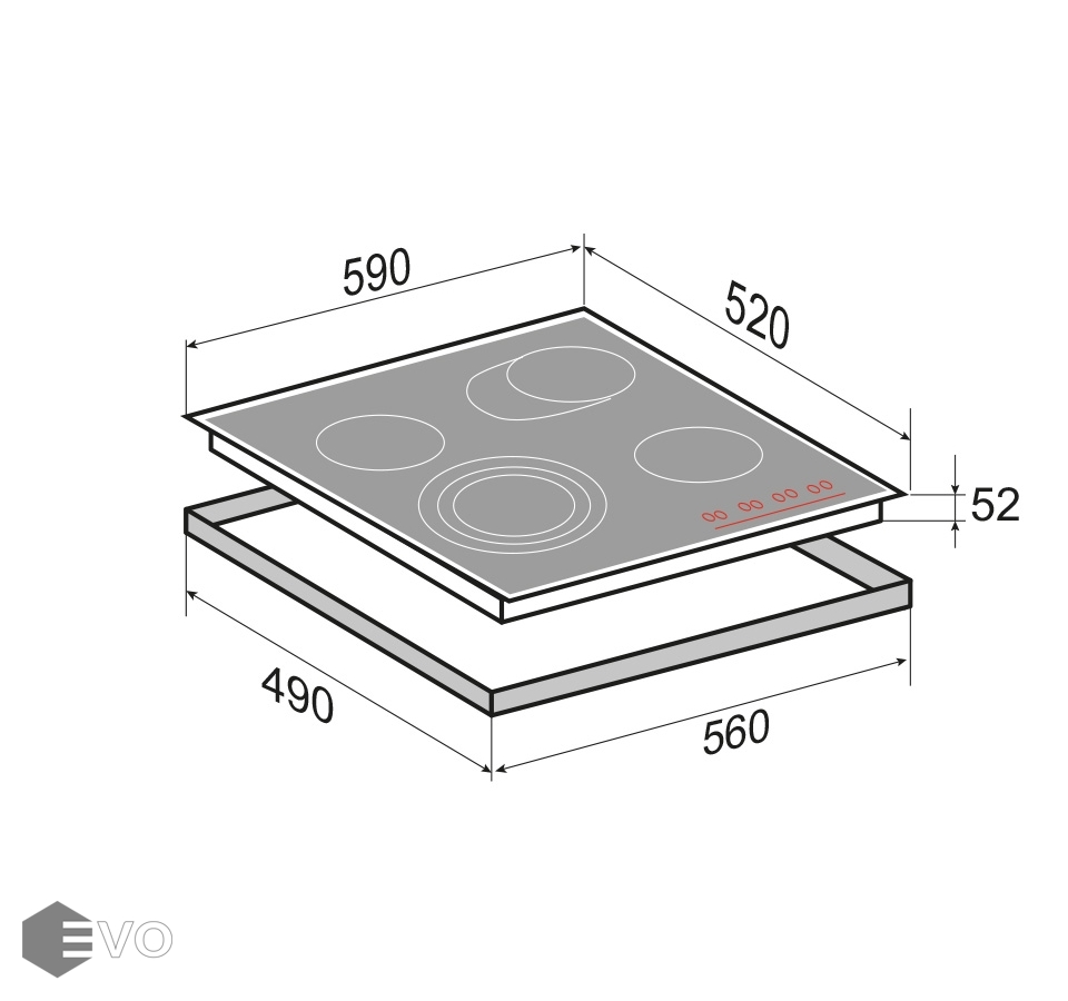 Размеры встраивания (ВхШхГ), мм: | 52х560х490 |