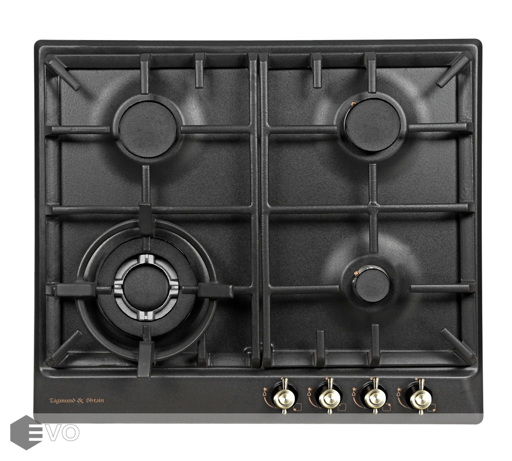 Газовая варочная поверхность Zigmund & Shtain G 12.6 B черного цвета оснащена системой газ-контроля, которая делает ее эксплуатацию безопасной. Если в конфорке гаснет пламя, то автоматически прекращается подача газа в нее. Всего у варочной поверхности 4 конфорки, отличающиеся размерами и мощностью. Одна из конфорок имеет тройной ряд пламени («Тройная корона»), что предусматривает возможность очень быстро приготовить на ней или разогреть любое блюдо. Съемные чугунные решетки обеспечивают устойчивость посуды с едой.