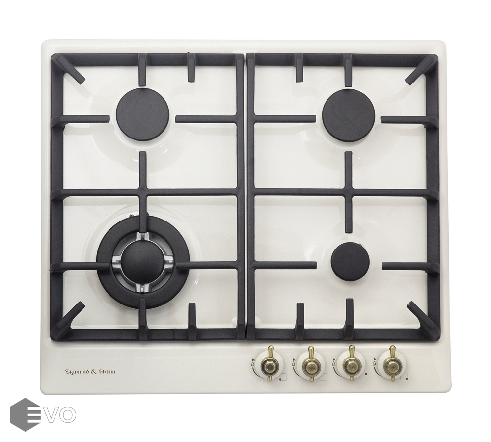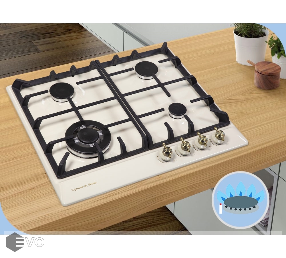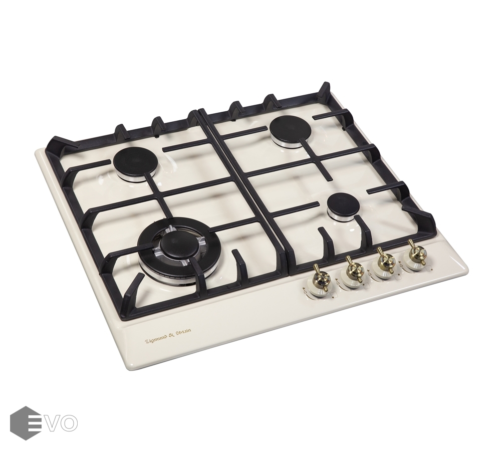 Газовая варочная поверхность Zigmund & Shtain G 12.6 X имеет эмалированную панель бежевого цвета, на которой расположены 4 конфорки. Они отличаются мощностью и размерами, что позволяет при приготовлении блюд пользоваться посудой разного объема. Две съемные чугунные решетки обеспечивают посуде с едой устойчивость, а при необходимости легко убираются. Для безопасного использования варочной поверхности в ней предусмотрена опция газ-контроля, автоматически перекрывающая подачу газа в конфорку, если в ней погасло пламя.