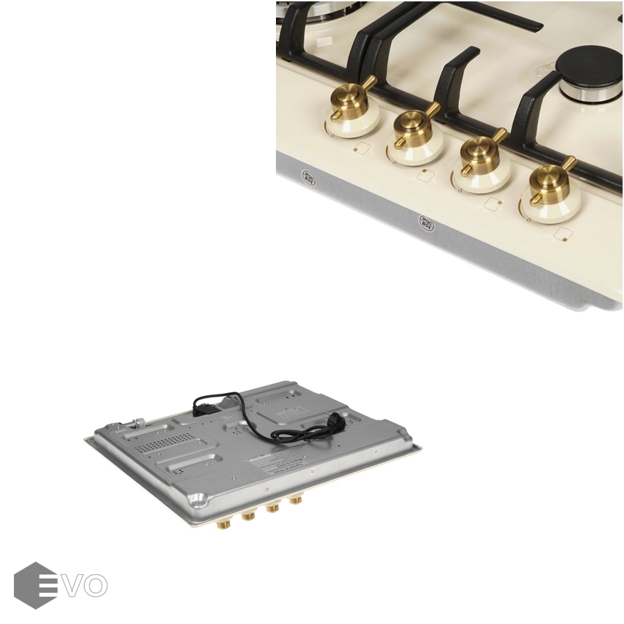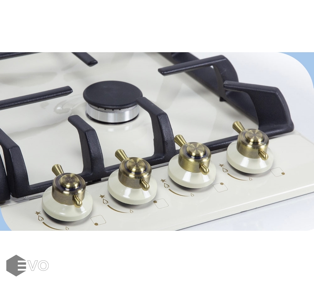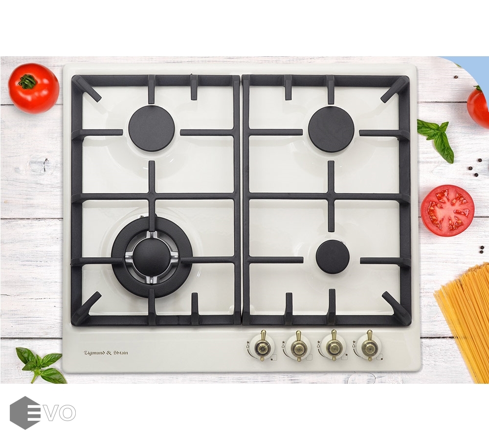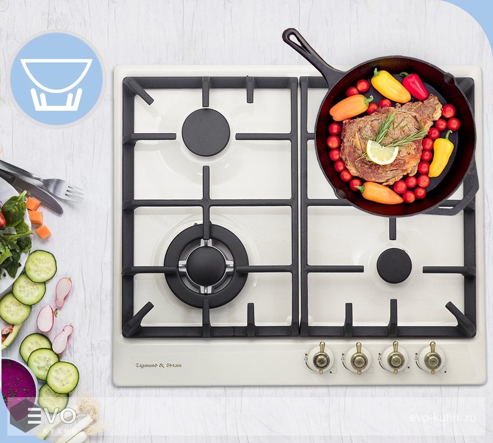 Газовая варочная поверхность Zigmund & Shtain G 12.6 X имеет эмалированную панель бежевого цвета, на которой расположены 4 конфорки. Они отличаются мощностью и размерами, что позволяет при приготовлении блюд пользоваться посудой разного объема. Две съемные чугунные решетки обеспечивают посуде с едой устойчивость, а при необходимости легко убираются. Для безопасного использования варочной поверхности в ней предусмотрена опция газ-контроля, автоматически перекрывающая подачу газа в конфорку, если в ней погасло пламя.