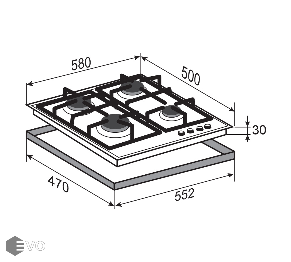 | Размеры встраивания (ВхШхГ), мм: | 30х552х470 |