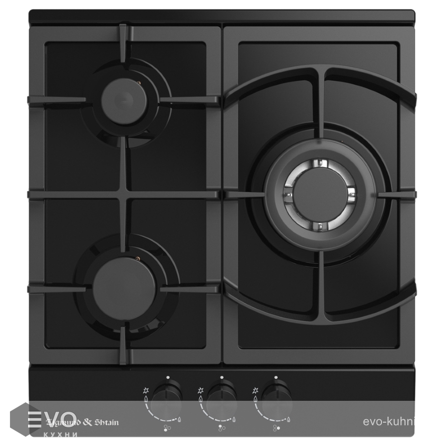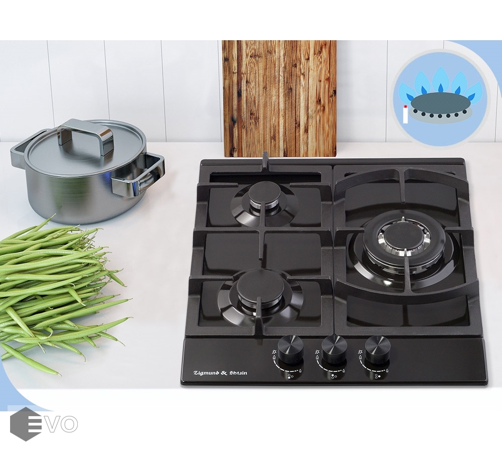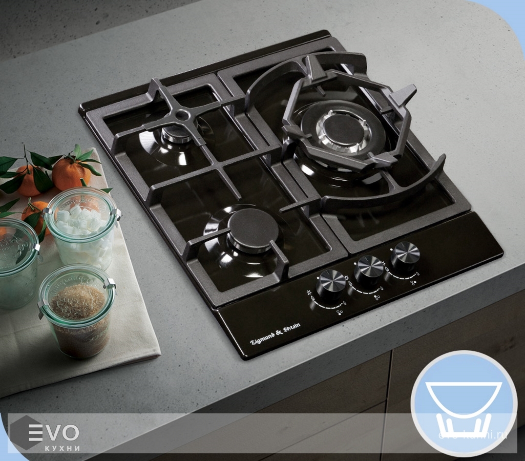 Встраиваемая варочная панель с тремя газовыми конфорками. Электроподжиг встроен в переключатели. WOK-горелка мощностью 3800 Вт. Каждая конфорка оснащена устройством контроля наличия пламени (газконтроль), которое останавливает подачу газа в случае исчезновения пламени.