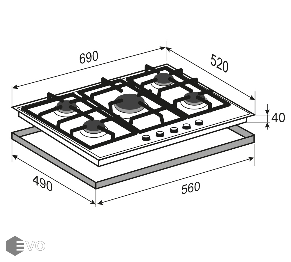 Размеры встраивания (ВхШхГ), мм: 40х560х490