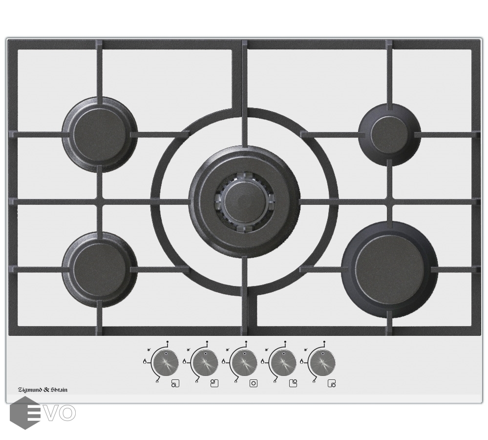 Выбор газовой варочной панели чаще всего обусловлен тем, что в частный дом или квартиру проведен именно газ в качестве обогрева. Работать с этой моделью довольно просто, так как мощность нагрева видна невооруженным взглядом — по силе огня в горелке. Количество конфорок в этой модели: 5. Горелки с тройной короной имеют несколько ступеней нагрева — в зависимости от них образуется несколько кругов пламени.