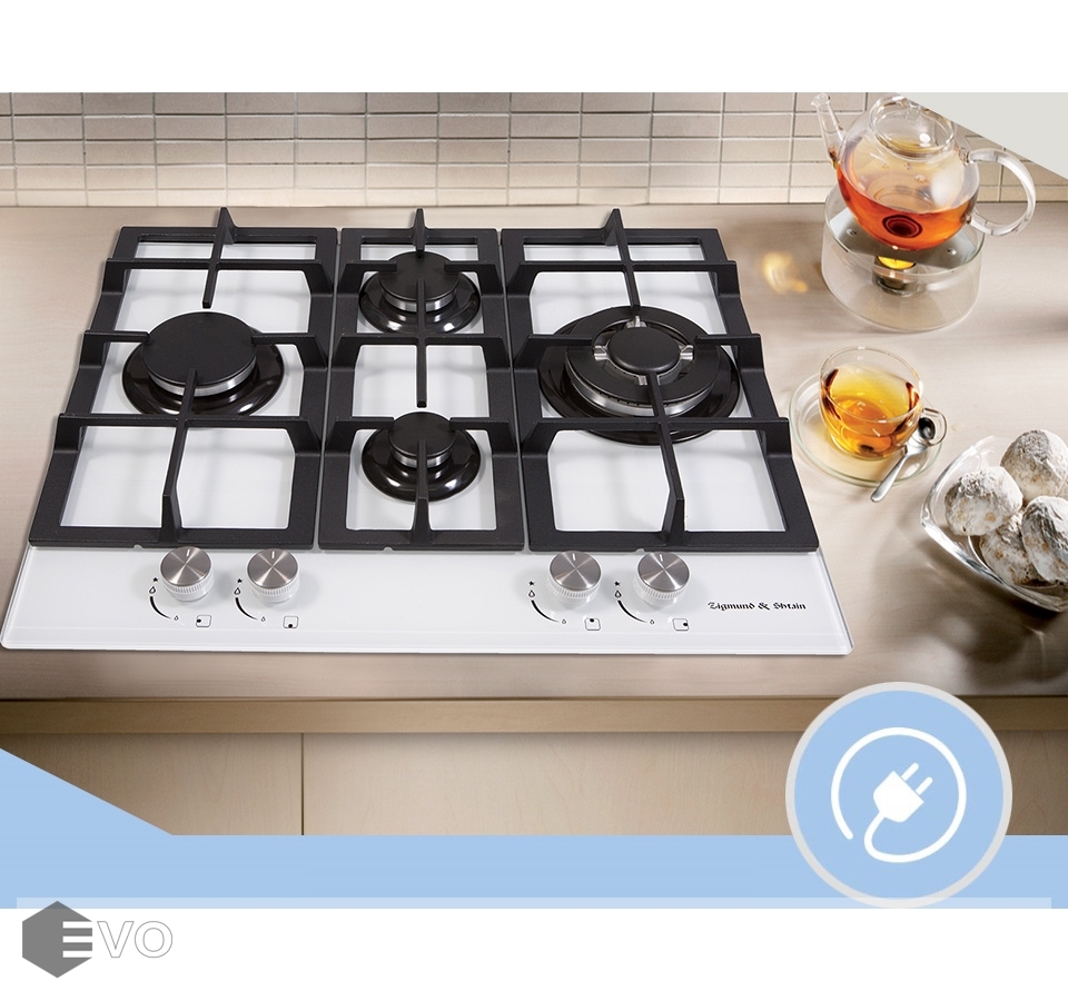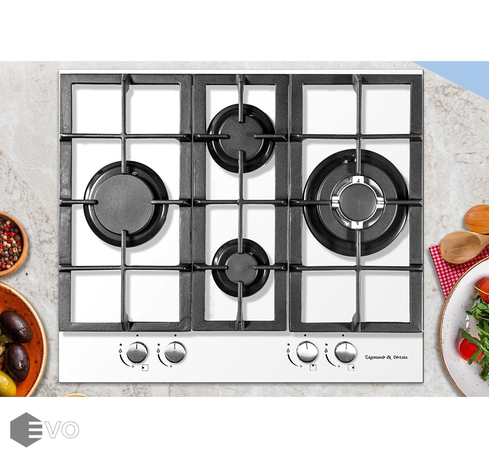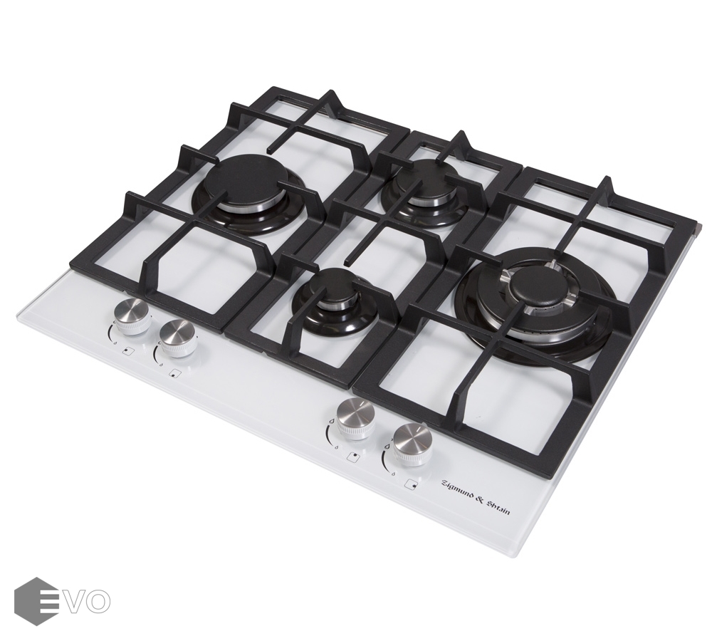 Газовая варочная поверхность Zigmund & Shtain MN 114.61 W обладает панелью белого цвета из высокопрочного закаленного стекла и чугунными черными решетками, надежно удерживающими посуду разного размера. Для быстрого приготовления предусмотрены конфорки с тройным и двойным рядом пламени. Всего предлагается 4 конфорки разной мощности для одновременного приготовления нескольких блюд одновременно. Для управления интенсивностью нагрева установлены поворотные переключатели. Технология электроподжига облегчает активацию конфорок без использования средств розжига, а система газ-контроля исключает вероятность утечки топлива в случае затухания пламени для безопасности в эксплуатации Zigmund & Shtain MN 114.61 W.