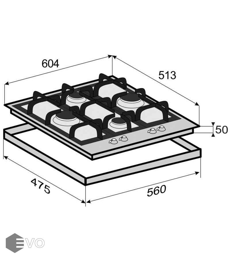 Размеры встраивания (ВхШхГ), мм: | 50х560х475 |