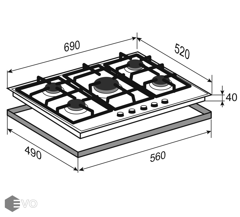 Размеры встраивания (ВхШхГ), мм: | 40х560х490 |