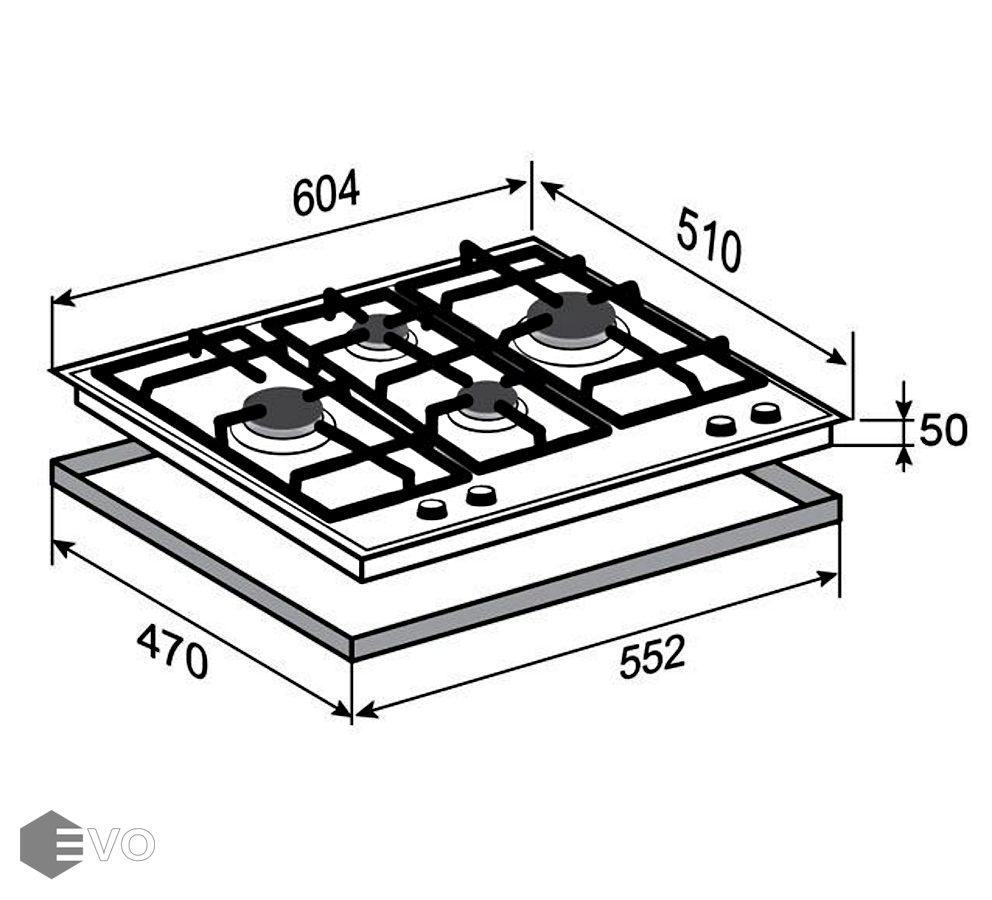 Размеры встраивания (ВхШхГ), мм: 50х552х470