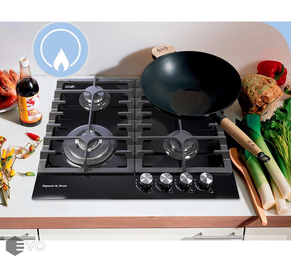 Самая главная особенность варочной панели Zigmund & Shtain MN 185.61 B в том, что рабочий стол этой модели выполнен из стеклокерамики французского производителя (Eurokera). Стеклокерамика не уступает по прочности закаленному стеклу, но сама она тоньше, что делает панель крайне привлекательной с точки зрения дизайна. К тому же стеклокерамика более устойчива к образованию царапин и потертостей, сохраняя тем самым превосходный внешний вид на долгие годы. Чугунные решетки обеспечат максимальную устойчивость посуды, а система «газ-контроль» позаботиться о Вашей безопасности, если пламя случайно погаснет. Так же в ручки управления интегрирован электроподжиг — теперь можно забыть о спичках, достаточно повернуть ручку и пламя зажжется от искры. Но это ещё не все—панель оснащена мощной конфоркой с тройным рядом пламени, что позволит Вам более равномерно прогревать дно посуды и быстро приготовить большее количество еды.