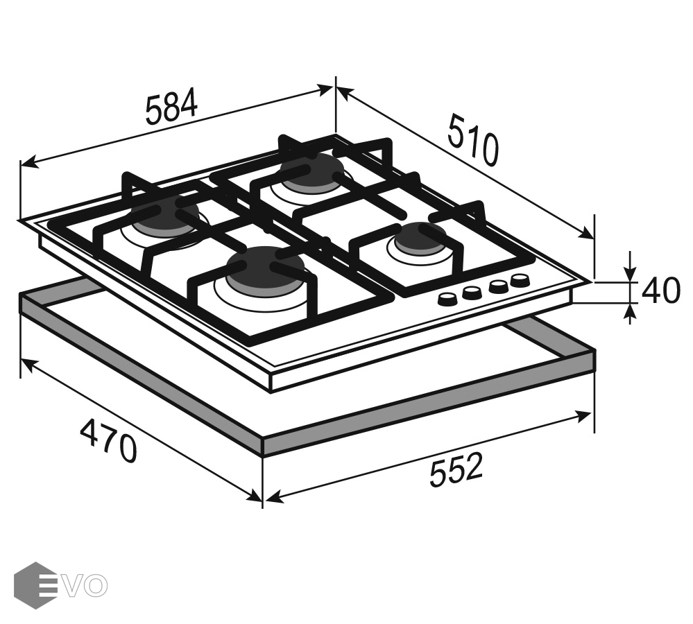 Размеры встраивания (ВхШхГ), мм: | 40х552х470 |