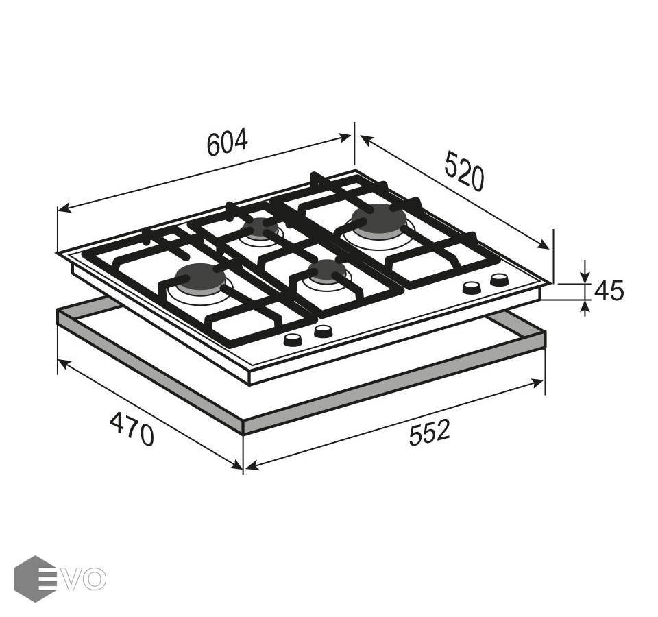 Размеры встраивания (ВхШхГ), мм: | 45х552х470 |