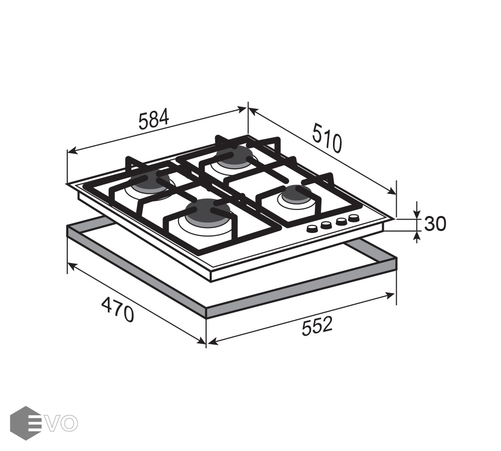 Размеры встраивания (ВхШхГ), мм: | 30х552х470 |