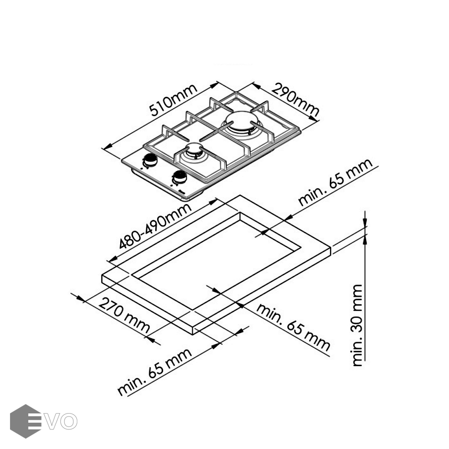 Размеры встраивания (ВхШхГ), мм: 30х270х480