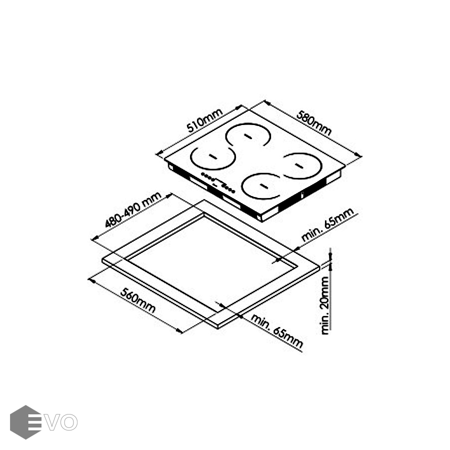 Размеры встраивания (ВхШхГ), мм: | 20х560х480 |