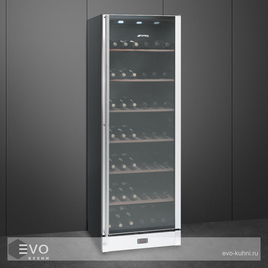 Винный шкаф Smeg SCV115A – отдельностоящий винный холодильник высотой 186 см отличается вместимостью и способен охладить одновременно 198 бутылок типа Бордо (0,75 л). Широкий диапазон температур (6-22℃) позволяет поддерживать оптимальный температурный режим, а следить за показателями поможет дисплей.
