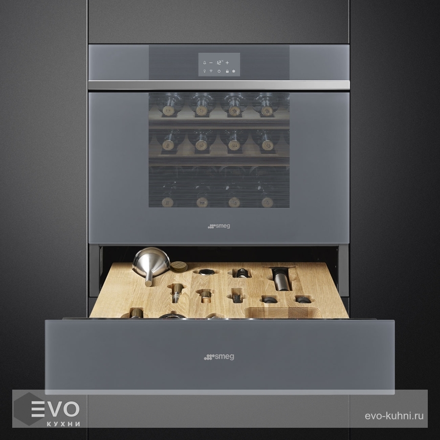 Ящик сомелье Smeg CPS115S – предназначен для установки в винные шкафы 45см. и оборудован системой Push, которая позволяет открыть крышку легким нажатием. Все аксессуары хранятся в деревянном футляре, который выполнен из скального дуба.