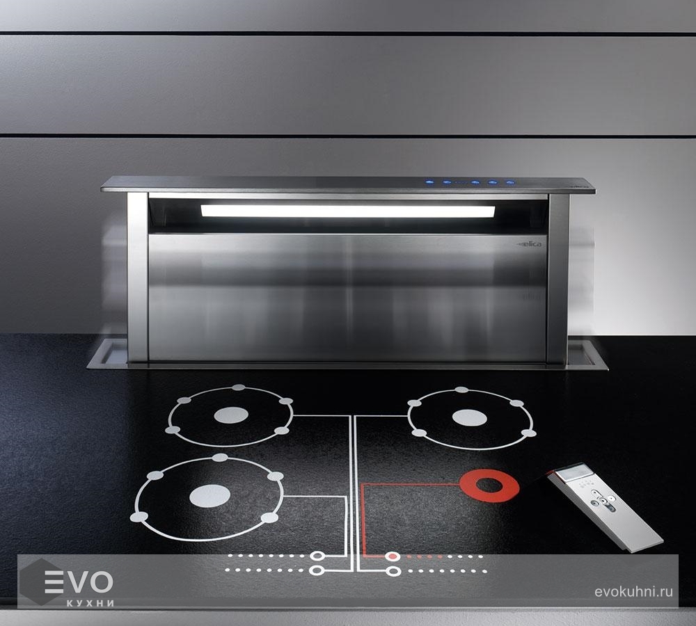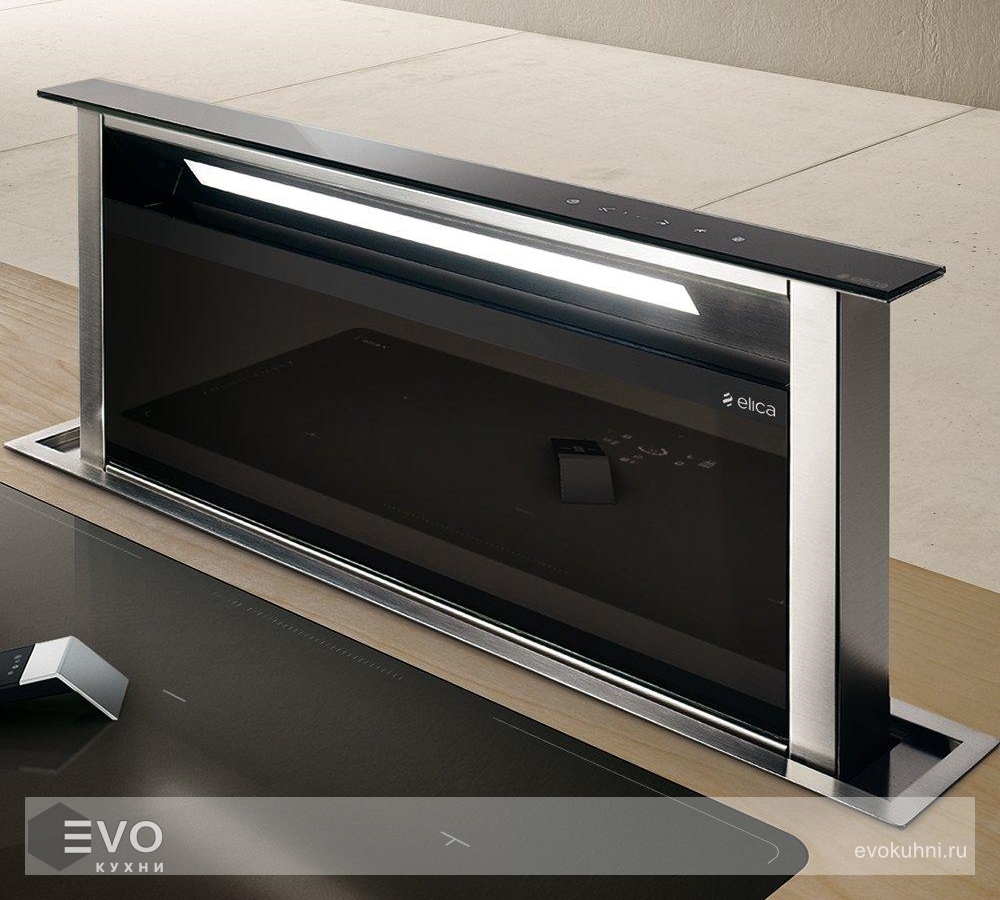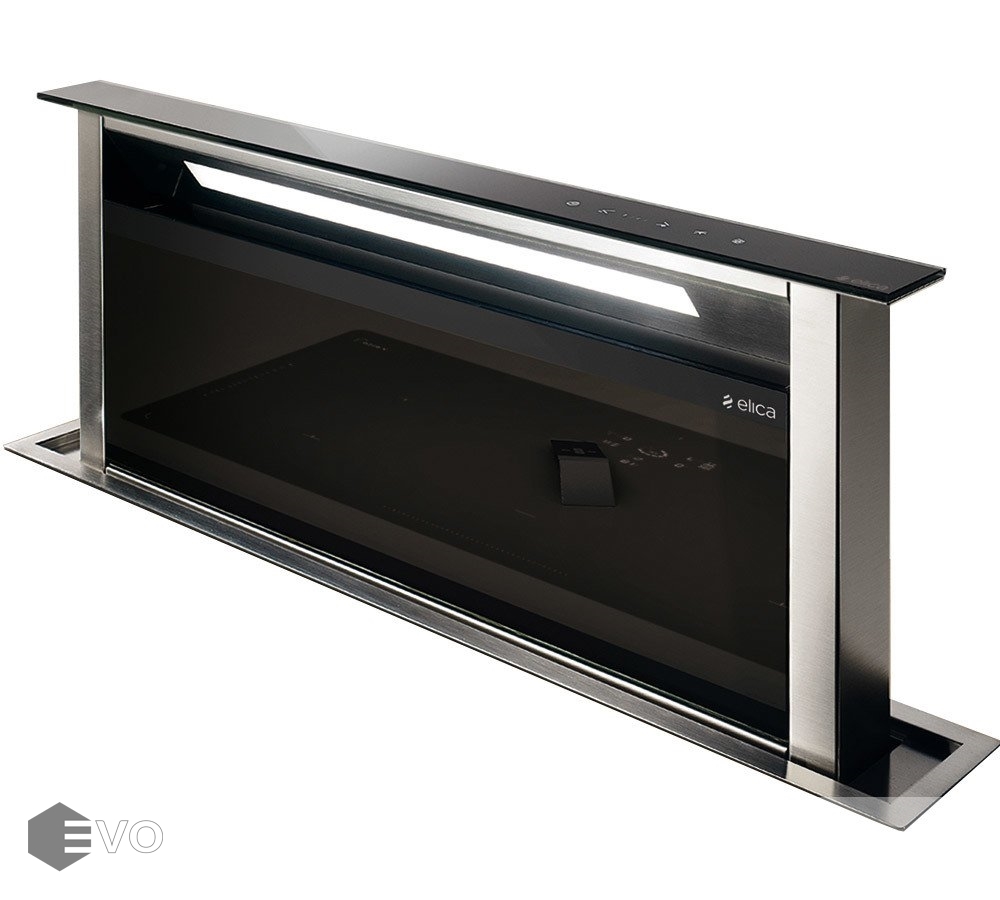 Встраиваемая в столешницу вытяжка ELICA ADAGIO GME BL/A/90 — идеальное сочетание внешней эстетики и инноваций. В выдвижной панели органично сочетаются нержавеющая сталь и черное стекло.