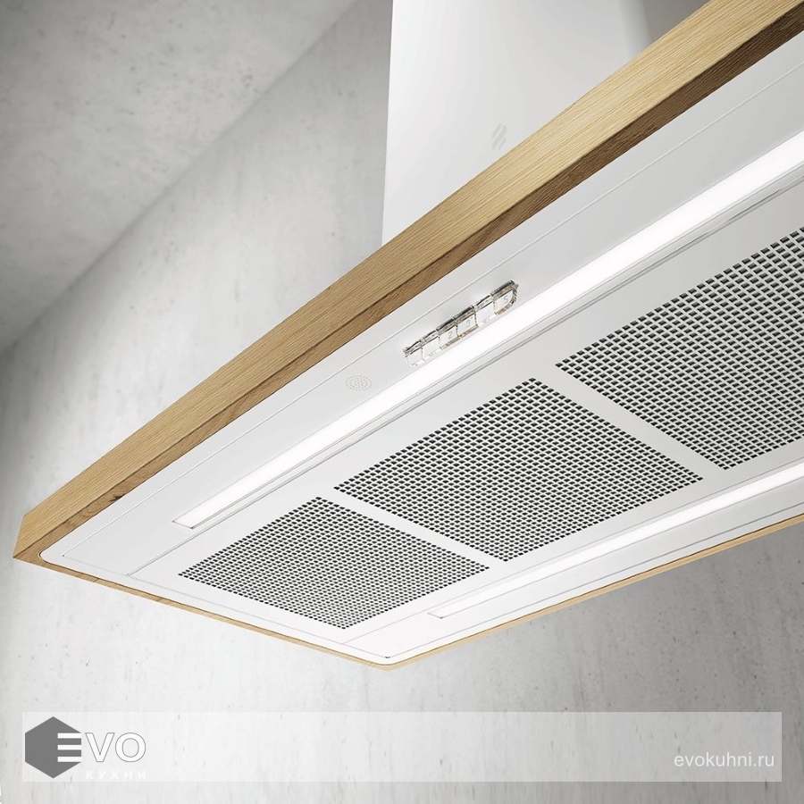 Вытяжка ELICA BIO ISLAND WH/A/120X58 ROVERE представлена в сочетании металла, окрашенного в белый цвет, и шлифованной древесины дуба. Модель гармонично впишется в интерьер кухни стиля «Натура» и «Модерн». Электронное управление надежно и удобно в применении.