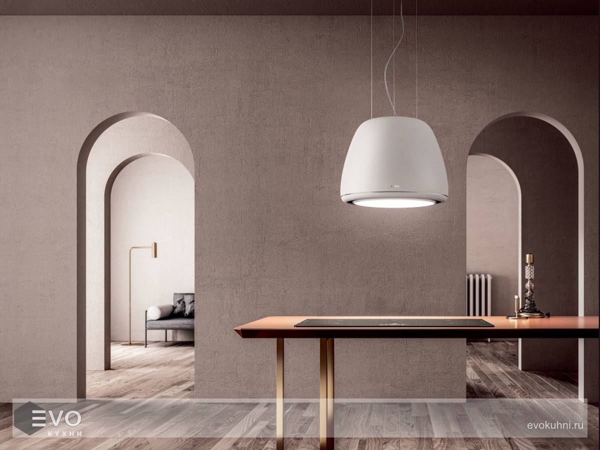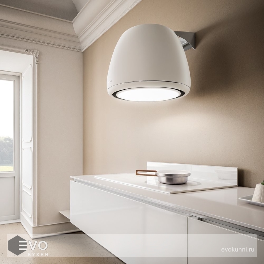 Подвесная вытяжка ELICA EDITH CLASSIC/F/50 в белом цвете, является победителем множества дизайнерских конкурсов. Потолочный монтаж предполагает установку перед кухонным островом, а пульт ДУ входящий в комплект, будет удобно переключать режимы и функции.