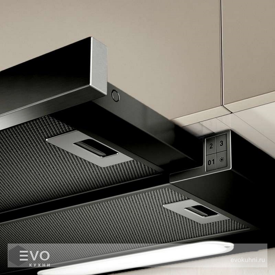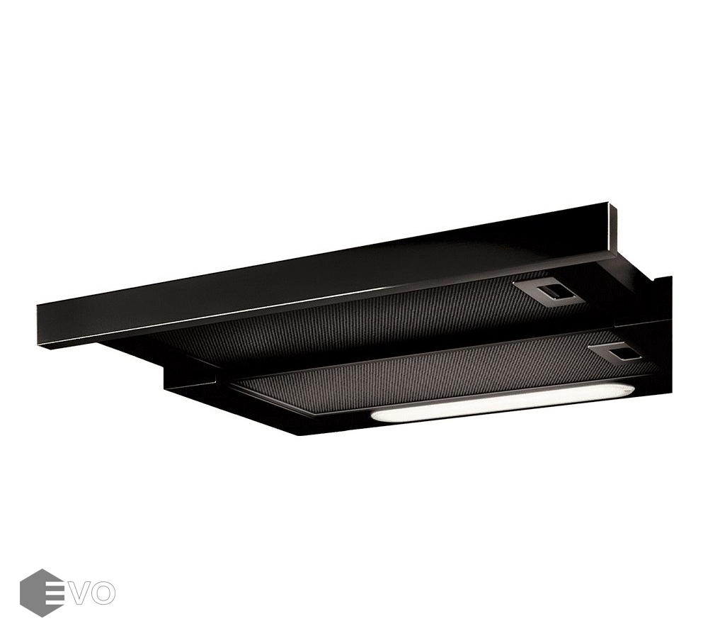 Прибор включается путем выдвижения передней панели. Простые кнопочные переключатели гарантируют удобное управление тремя скоростями вытяжки и включением/выключением освещения. Алюминиевый фильтр пригоден для мытья в посудомоечной машине. Модель может работать в режимах отвода и рециркуляции (угольный фильтр для работы в режиме рециркуляции должен быть приобретен отдельно). Две яркие галогенные лампы станут полноценным источником освещения рабочей поверхности.