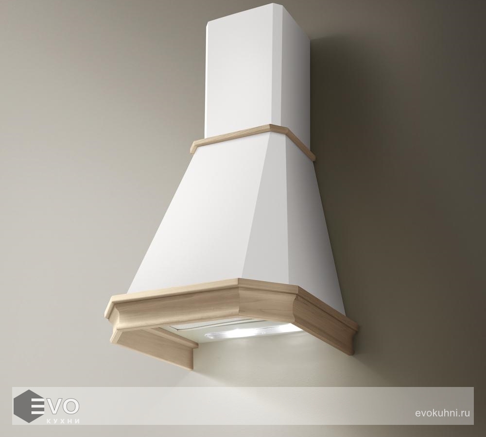 Классическая купольная вытяжка ELICA EMERALD WH/A/60 T.GREZZO выполнена в стиле кантри. Модель белого цвета дополняется рамкой из неокрашенного натурального дерева. Своеобразный дизайн позволяет интегрировать вытяжку в классический интерьер или на кухню в стиле «прованс».