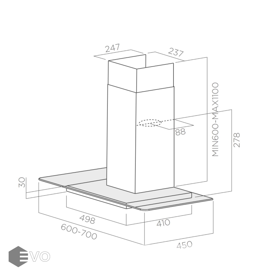 Тип вытяжки : | Традиционная (пристенная) |