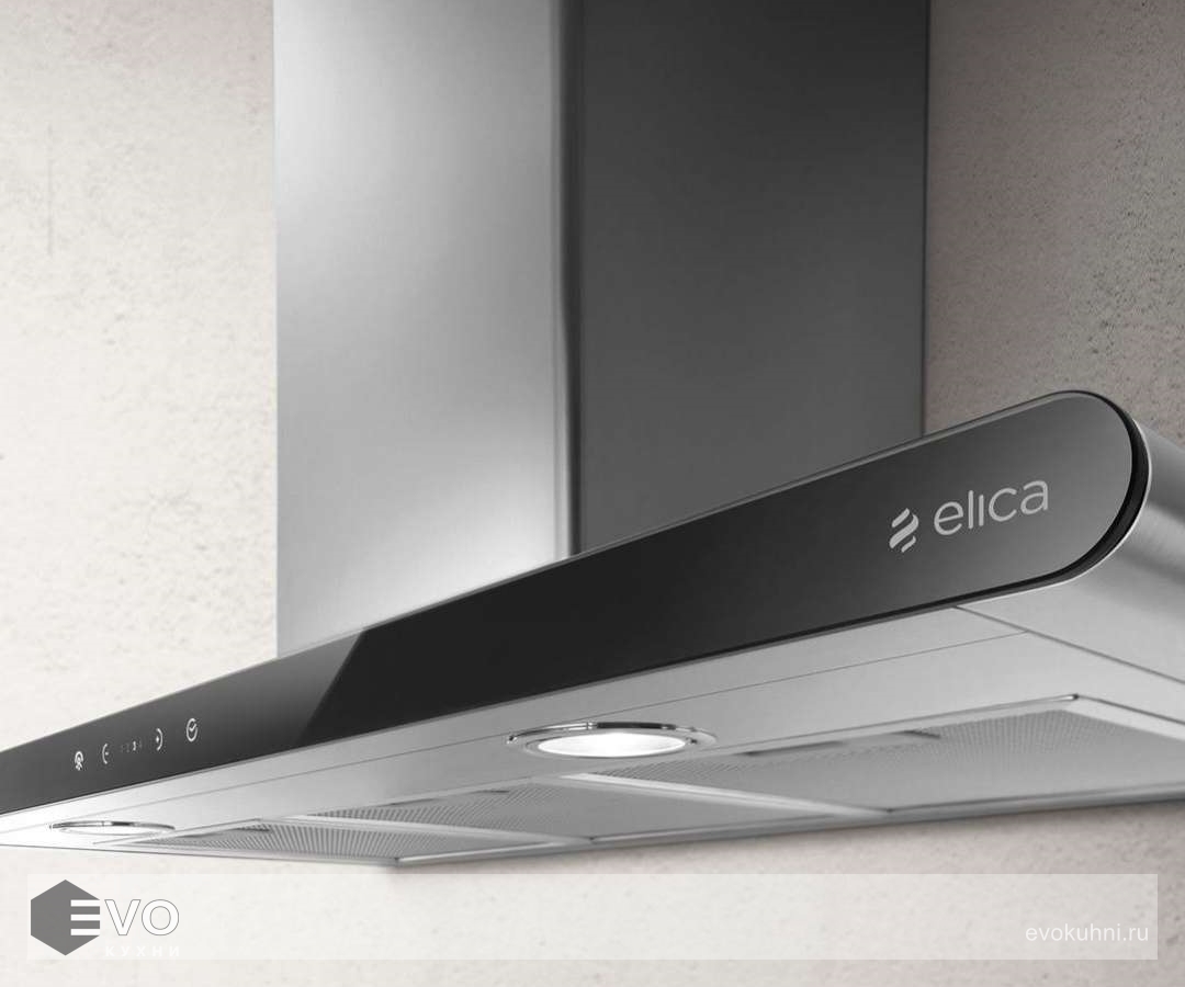 Настенная вытяжка ELICA GALAXY BLIX/A/80 с увеличенной шириной 80 см имеет простой геометричный дизайн. Модель выполнена в цвете «нержавеющая сталь» и может быть интегрирована в любой современный кухонный интерьер. Фасад дополнен вставкой из черного стекла, на которой располагается панель управления.