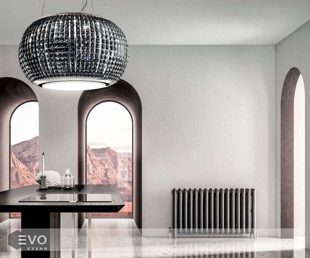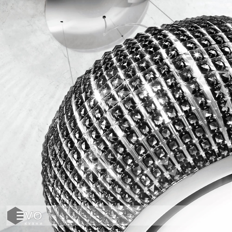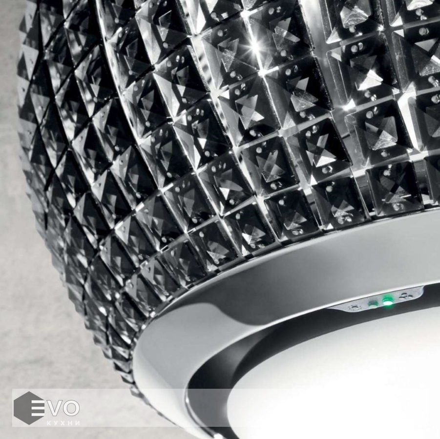 Революционная дизайнерская модель вытяжки-люстры ELICA INTERSTELLAR BL/F/65 представлена в сочетании зеркальной полированной стали и 1062 кристаллов из прозрачного черного стекла. Светодиодные полосы дают мягкий свет, регулируемый по степени интенсивности, а LED-диск можно точно направлять на варочную поверхность.