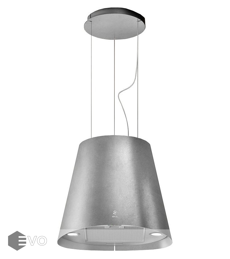 Подвесная вытяжка JUNO URBAN ZINC/F/50 крепится к потолку на тонкие металлические тросы. Благодаря лаконичной форме модель гармонично сочетается в другими современными приборами от Elica.