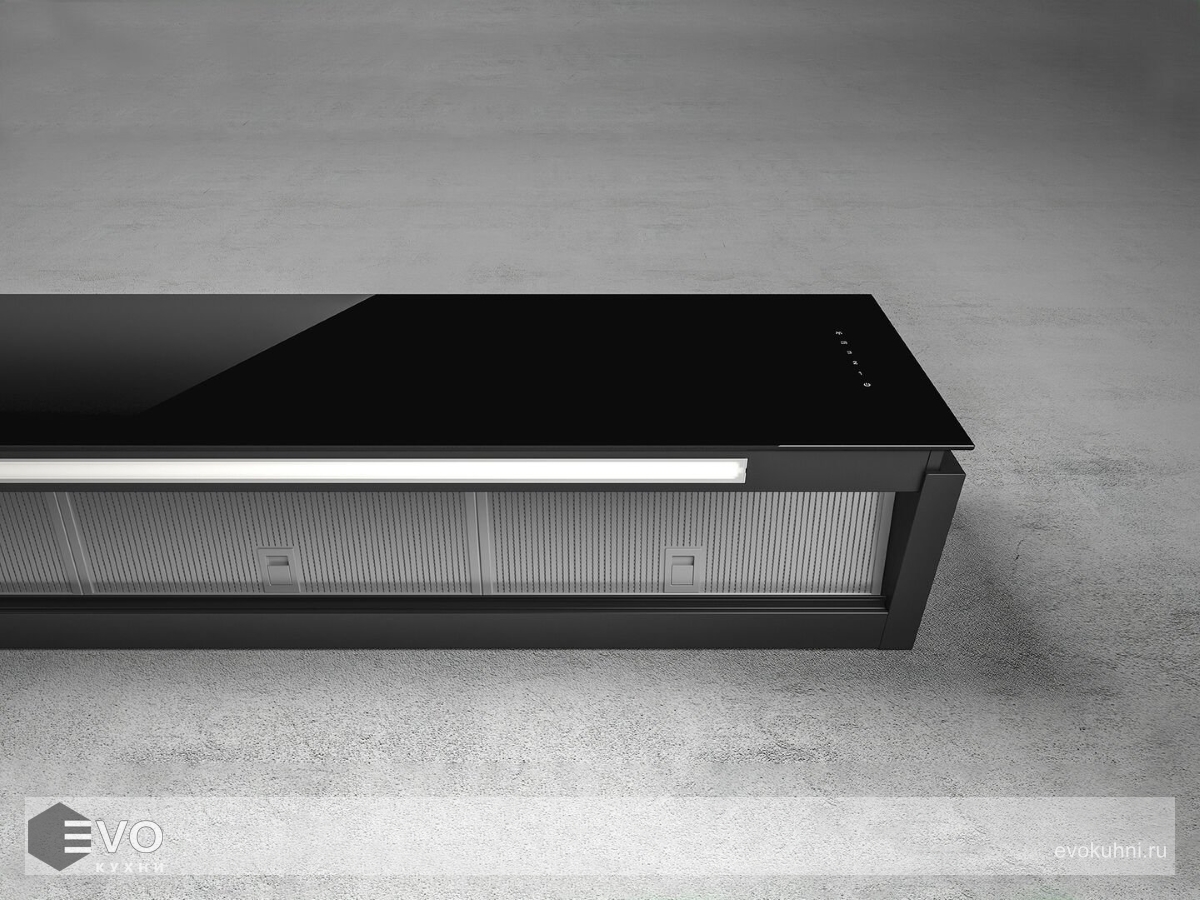 Вытяжка Elica RULES BL/F/60 представлена в универсальном черном цвете со стеклянной передней панелью. Благодаря механизму SHIFT 2136 глубина прибора может варьироваться от 21 до 36 см, что позволяет комфортно устанавливать его в любом интерьере.