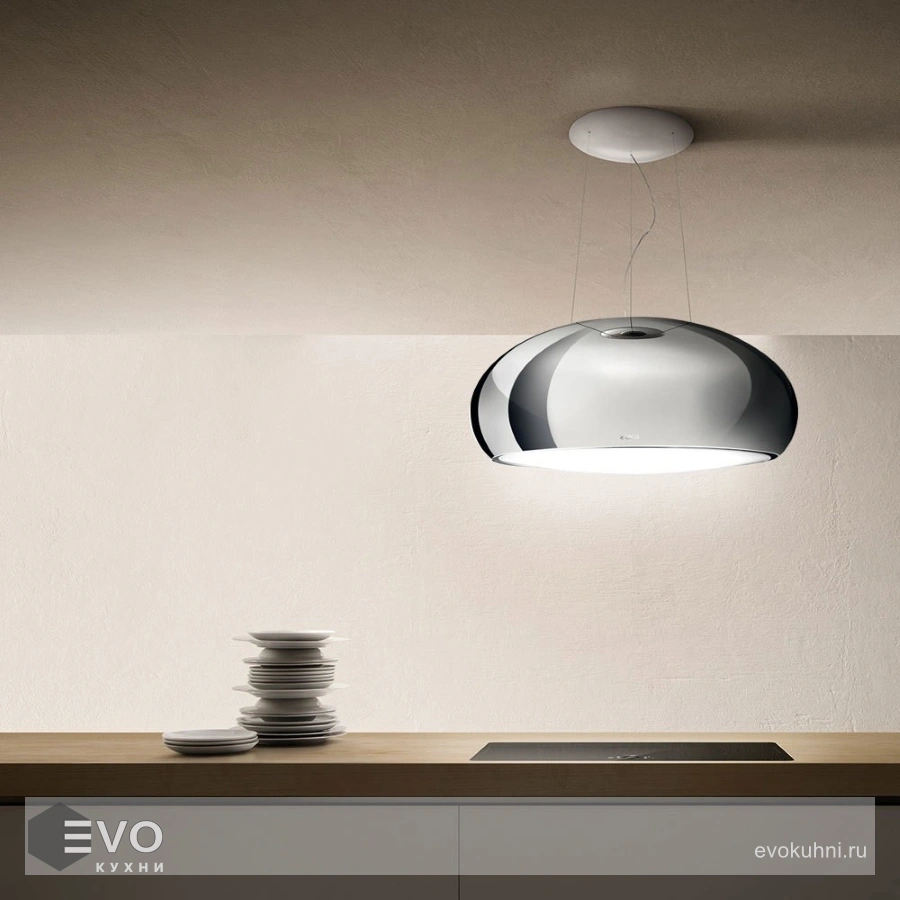 Подвесная вытяжка ELICA SEASHELL IX/F/80 не зря названа «ракушкой»: безупречные плавные линии ассоциируются именно с морем и его дарами. Уникальный внешний вид делает модель не просто вспомогательным кухонным оборудованием, но и полноценной частью интерьера. Корпус, выполненный из полированной нержавеющей стали, крепится к потолку на тонкие металлические тросы, создавая эффект двойного назначения: вытяжки и люстры.
