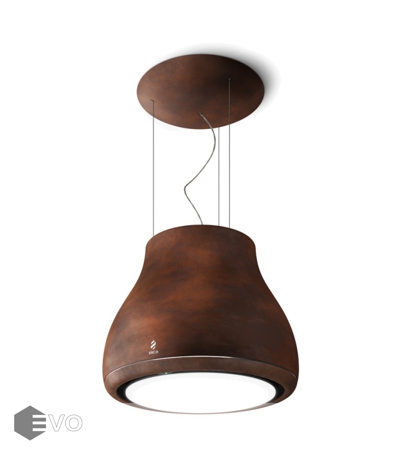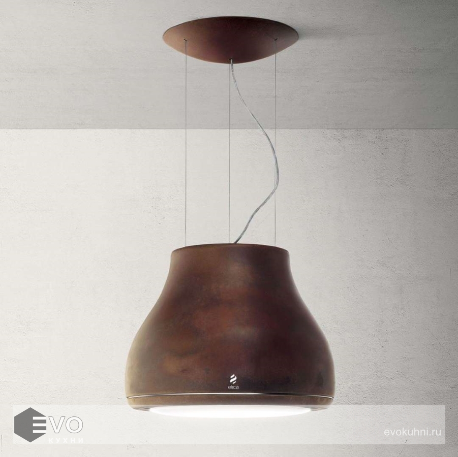 Подвесная вытяжка-люстра ELICA SHINING RUST/F/50 выполнена в цвете «состаренная медь». Модель великолепно вписывается как в классический, так и в современный интерьер в стиле хай-тек или лофт. На нижней кромке расположена панель управления, все функции которой включаются и с пульта ДУ. Потолочный монтаж позволяет повесить вытяжку над кухонным островом, но также существует возможность установки на стену.