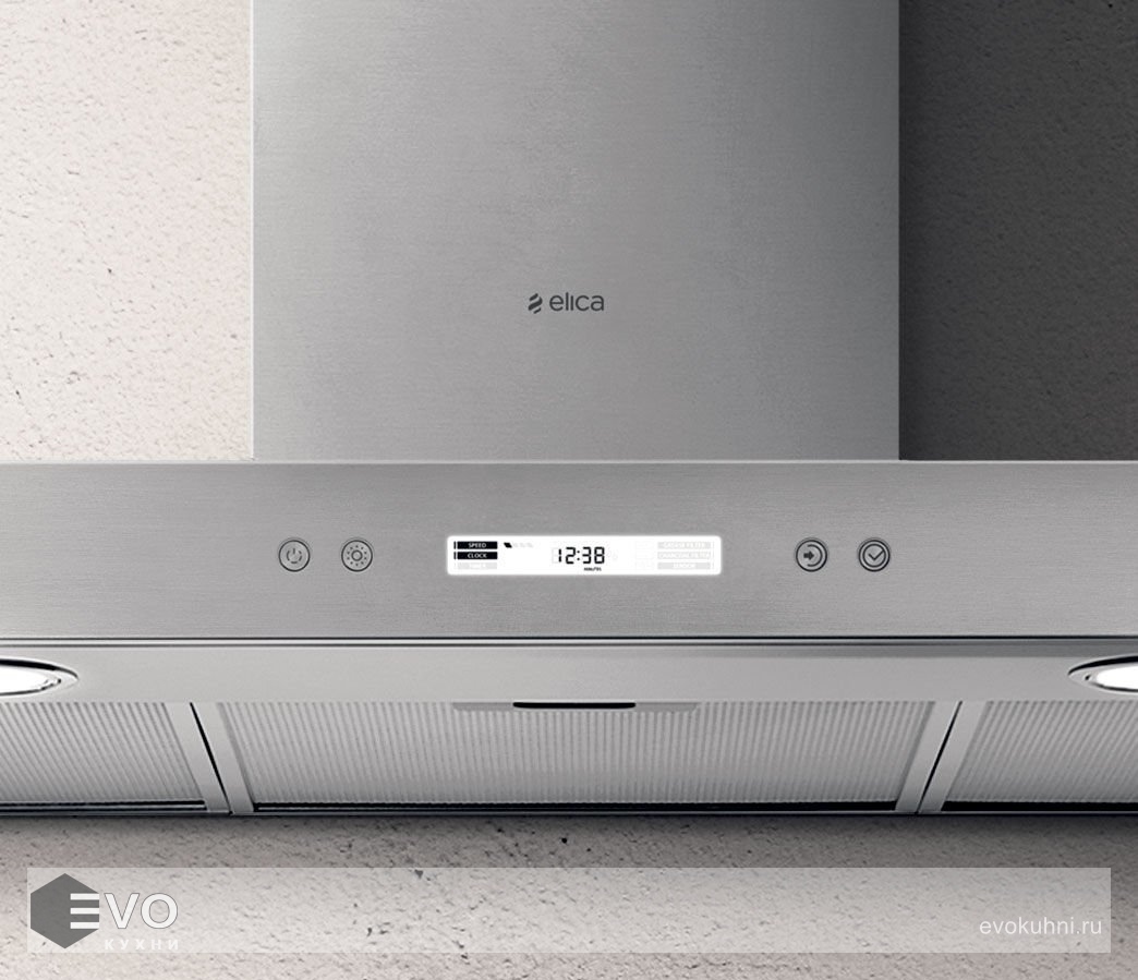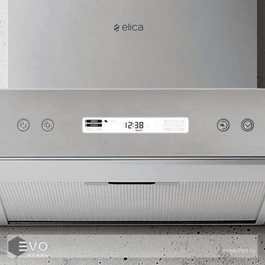 Настенная вытяжка ELICA SPOT PLUS IX/A/60 шириной 60 см имеет универсальный геометричный дизайн. Модель выполнена в цвете «нержавеющая сталь» и может быть интегрирована в любой современный кухонный интерьер. Фасад дополнен информативным дисплеем, на котором отображаются установленные настройки.
