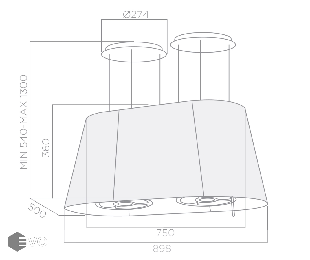 Модель работает в режиме рециркуляции — фильтрации воздуха. Угольный фильтр с продолжительным сроком службы (до 3-х лет) поставляется в комплекте. Индикатор насыщения сообщит о необходимости очистки или замены фильтра. Удобный стержень Magic Wand помогает с легкостью управлять четырьмя скоростями вытяжки и освещением. Устройство оснащено 8 яркими галогенными лампами, что делает вытяжку-люстру самостоятельным осветительным прибором на кухне.