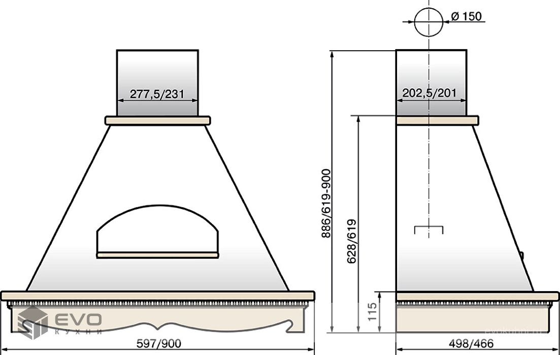 Тип вытяжки : | Традиционная (пристенная) |