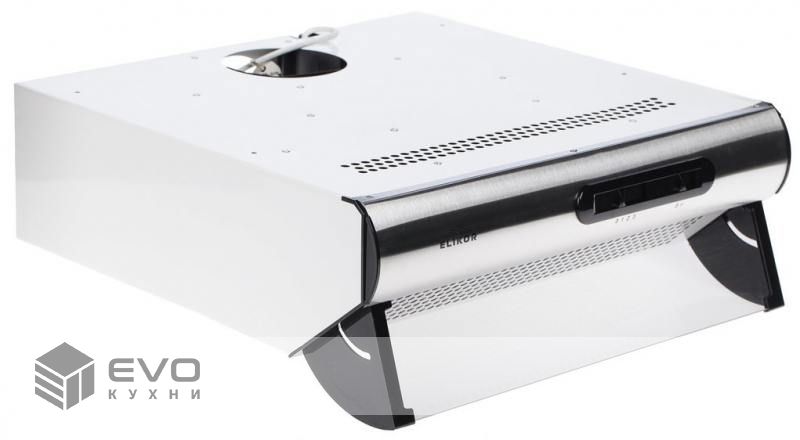 Модель ELIKOR Europa выполнена из стали с антикоррозийным покрытием белого цвета. Итальянский мотор обеспечивает должный уровень очистки при потребляемой мощности в 170 Вт. Изделие функционирует на трех скоростях, которые переключаются при помощи ползунков. Работая в двух режимах, вытяжка может выводить воздух через домовую шахту вентиляции или пропускать его через два встроенных фильтра. Угольный фильтр избавляет от неприятных запахов, а жировой не только очищает воздух, но и осуществляет защиту внутренних деталей изделия. Для подсветки поверхности плиты предусмотрена лампа в 40 Вт.
