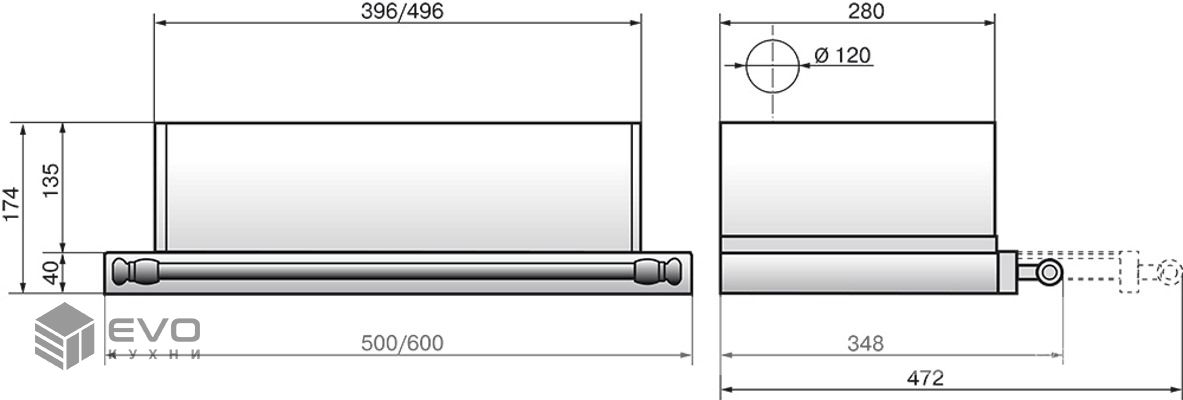 Тип вытяжки : | Встраиваемая (в шкаф) |